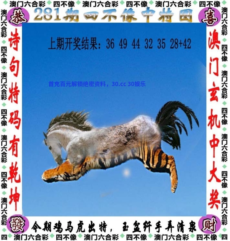 281期:今期鸡马虎出特,玉盆纤手弄清泉【开:羊47】 ①鸡马虎蛇羊 |